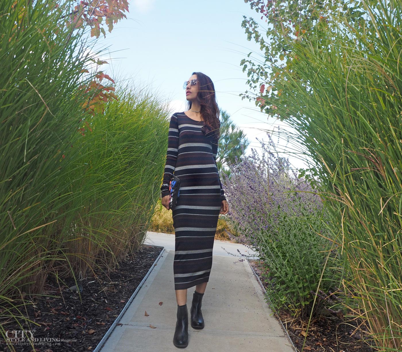 Dress: Only stripe maxi dress/ Shoes: Ugg Chelsea Boots / Purse: Tous purse